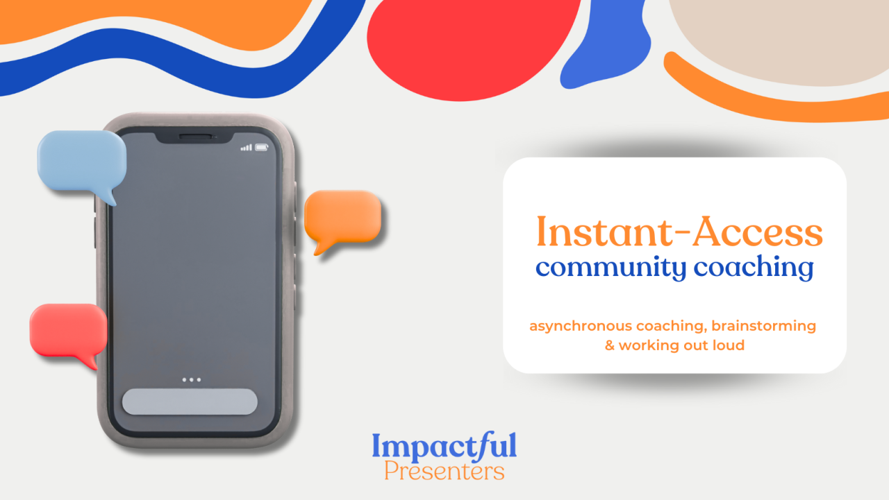 The Speaking Confidence Program (included in Presence + Impact) is the foundation modules from the Impactful Presenters program, designed for people who want to speak with more confidence in day-to-day professional conversations. It’s a self-paced program that doesn’t have coaching. It's a self-paced program and doesn't include any coaching.