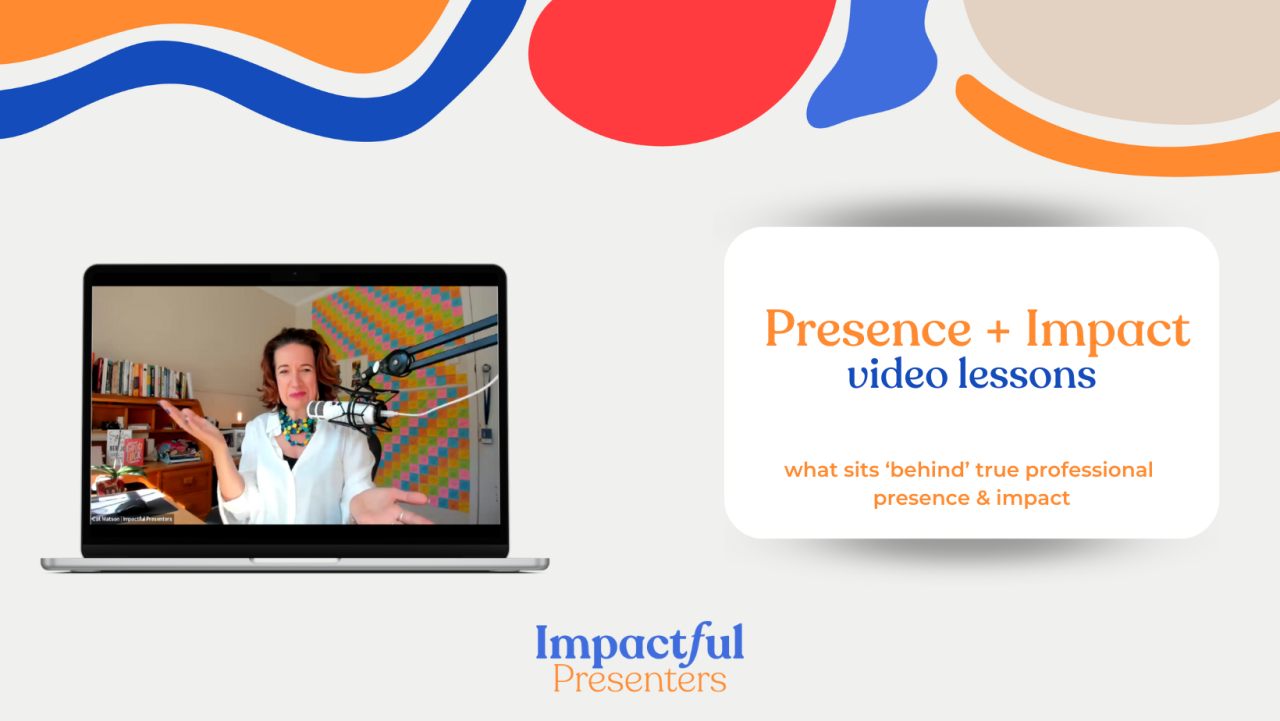 Presence + Impact is a new program, informed by the 300+ people who’ve gone through the Speaking Confidence and Impactful Presenters Programs, showing you not just how to speak with confidence and present with impact, but also how to develop the professional presence you need to command a room and hold a conversation that moves the dial.